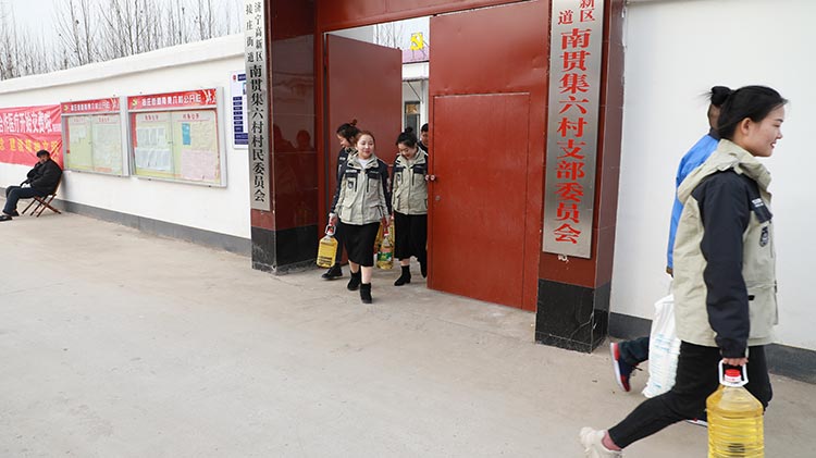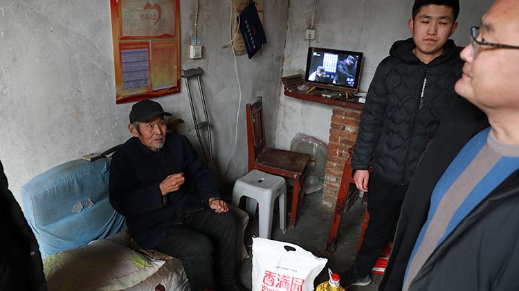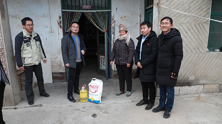 公司準備了大米、食用油等生活物品,在劉總帶領下我們來到了南集六村黨群服務處,和村領導溝通了解了村內貧困戶情況,并一起走訪慰問貧困戶。