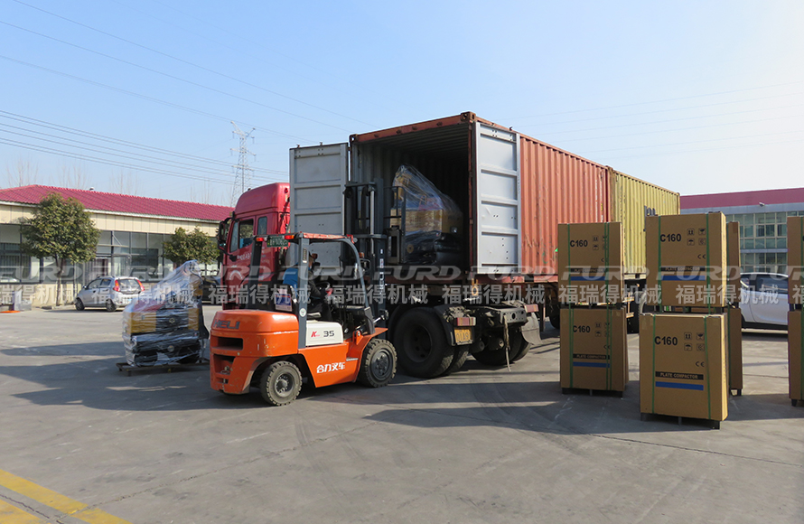 2月22日,福瑞得機(jī)械5臺(tái)手扶壓路機(jī)和18臺(tái)平板夯打包裝車(chē)發(fā)往埃塞俄比亞。