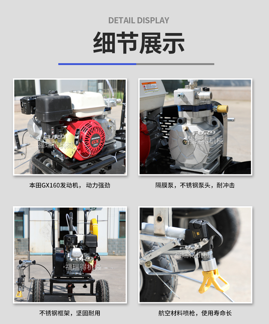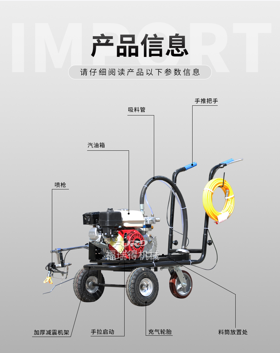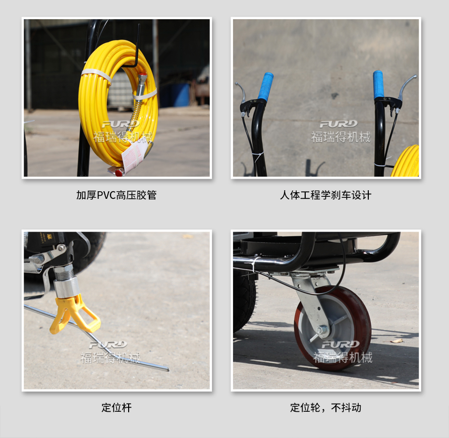 小型手推式道路劃線機(jī)是一種在道路、停車場(chǎng)、廣場(chǎng)和跑道等平整地面上劃出不同約束、指引和警示等規(guī)則限制標(biāo)志的路面施工機(jī)械。最常見的就是在馬路上劃斑馬線,在路上劃車庫線、停車線等等應(yīng)用于小型工程、短途施工,活動(dòng)方便,靈活操作。