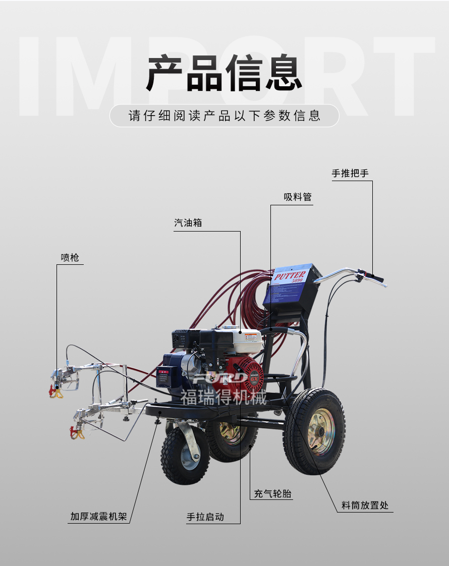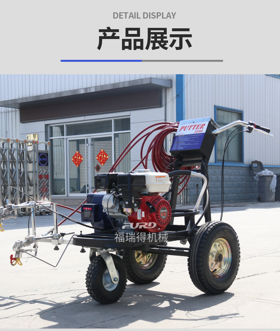 小型手推式道路劃線機(jī)是一種在道路、停車場(chǎng)、廣場(chǎng)和跑道等平整地面上劃出不同約束、指引和警示等規(guī)則限制標(biāo)志的路面施工機(jī)械。最常見的就是在馬路上劃斑馬線,在路上劃車庫線、停車線等等應(yīng)用于小型工程、短途施工,活動(dòng)方便,靈活操作。