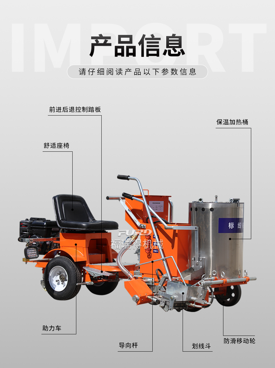 應用于道路、高速公路、停車場、廣場和跑道的在平整地面上劃出不同約速、指引和警示等規(guī)則限制標志的路面施工機械。
