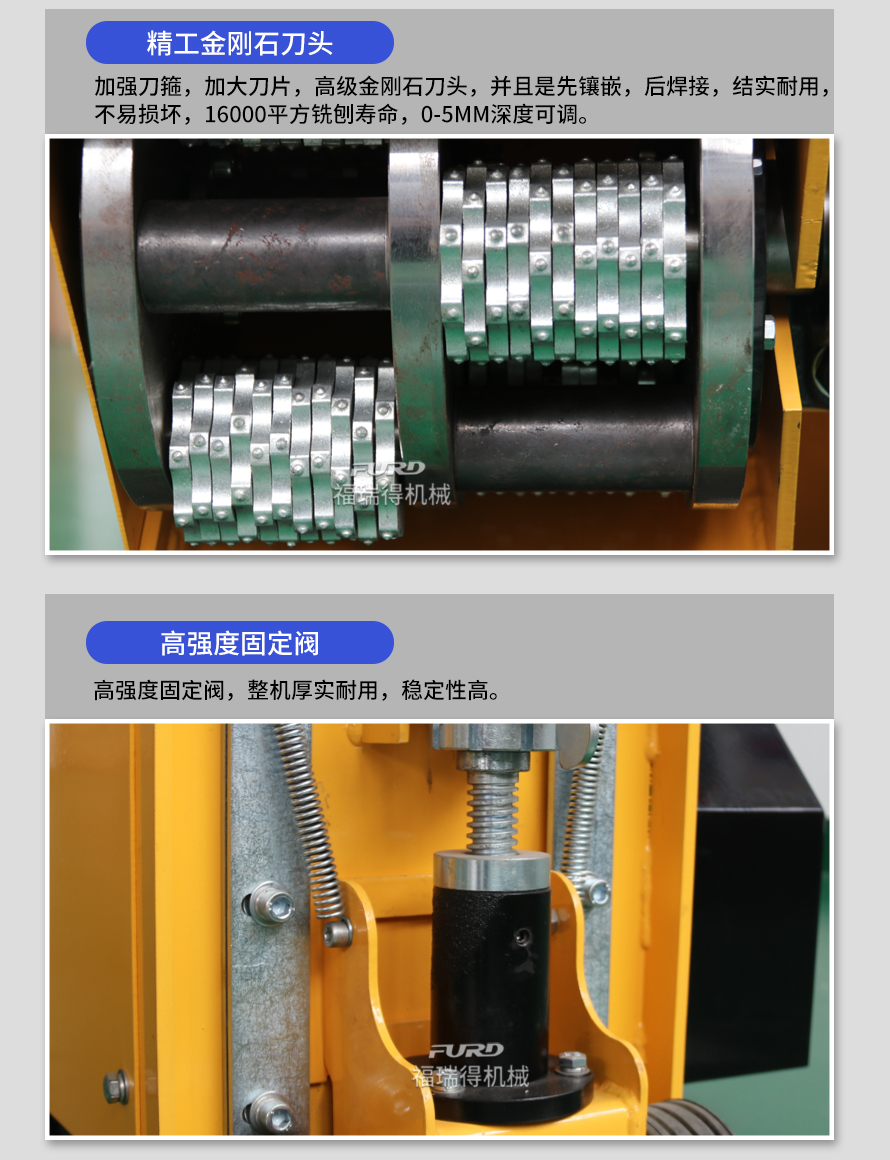 用于橋面鋪設瀝青或車間舊的混凝土地面重新攤鋪混凝土之前,清除水泥浮漿以及鏟平拉毛, 也用于清除建筑施工中的堅硬灰渣。